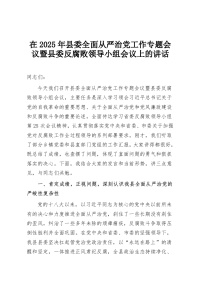 在2025年县委全面从严治党工作专题会议暨县委反腐败领导小组会议上的讲话