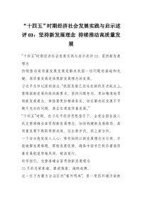 “十四五”时期经济社会发展实践与启示述评03:坚持新发展理念 持续推动高质量发展