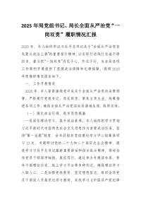 2025年局党组书记、局长全面从严治党“一岗双责”履职情况汇报