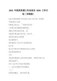 2025 年医院党建工作总结及 2026 工作计划(详细版)