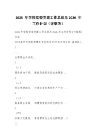 2025 年学校党委党建工作总结及2026 年工作计划(详细版)
