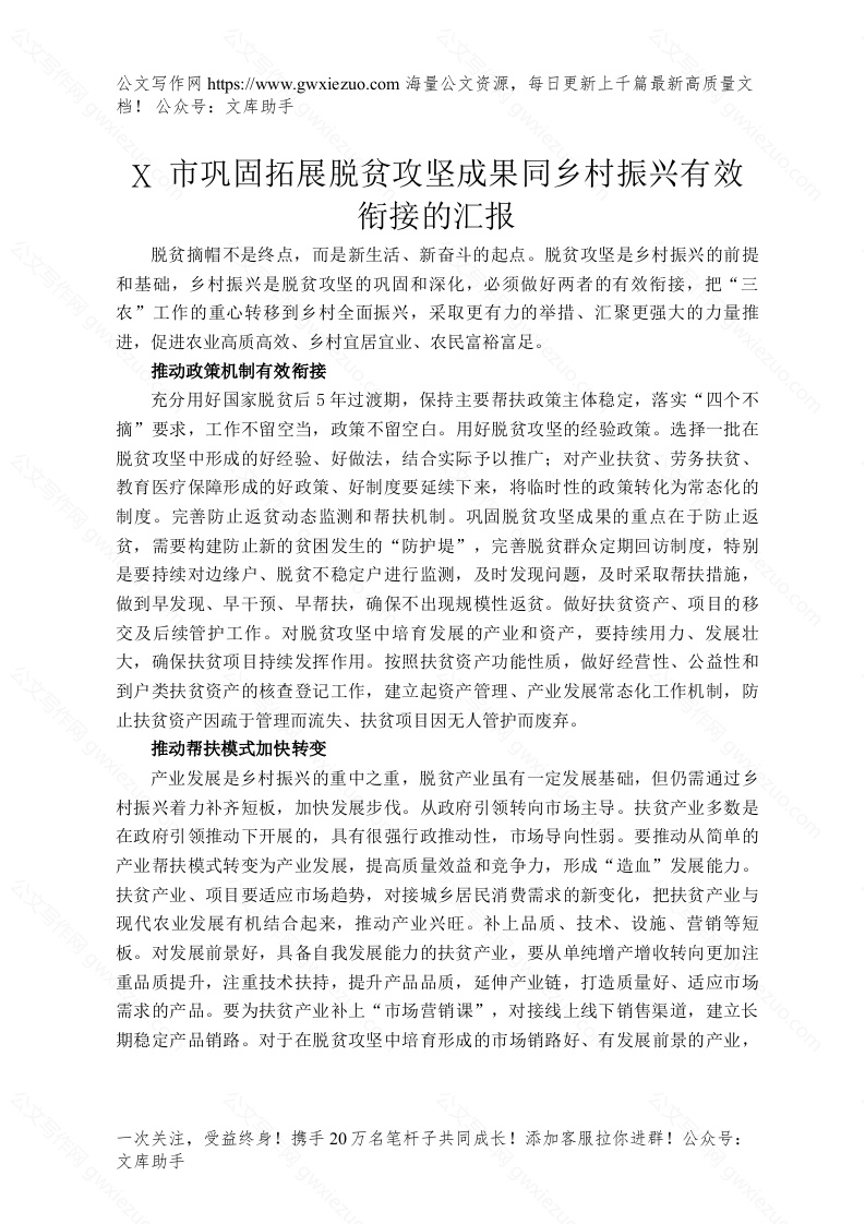 X市巩固拓展脱贫攻坚成果同乡村振兴有效衔接的汇报