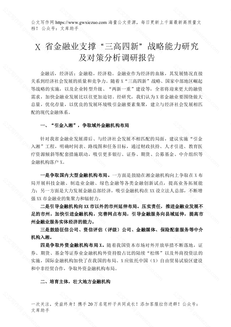 首页学习提升X省金融业支撑“三高四新”战略能力研究及对策分析调研报告