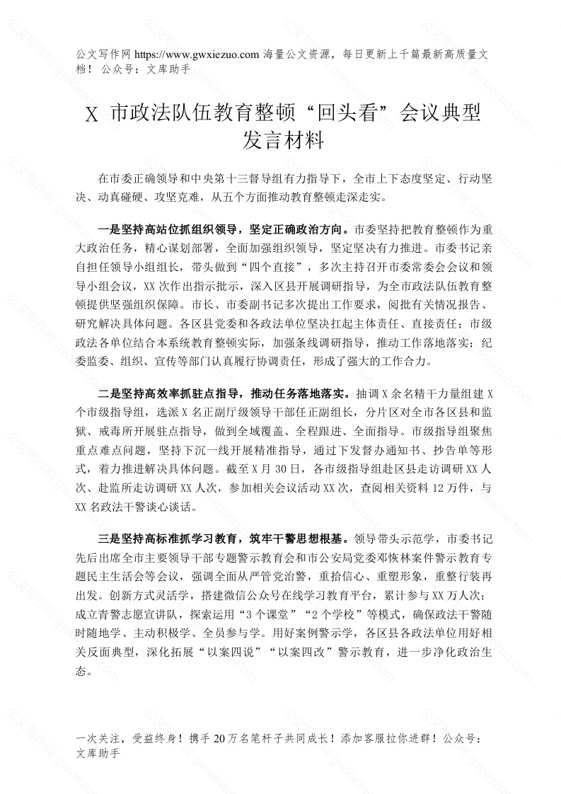 首页学习提升X市政法队伍教育整顿“回头看”会议典型发言材料