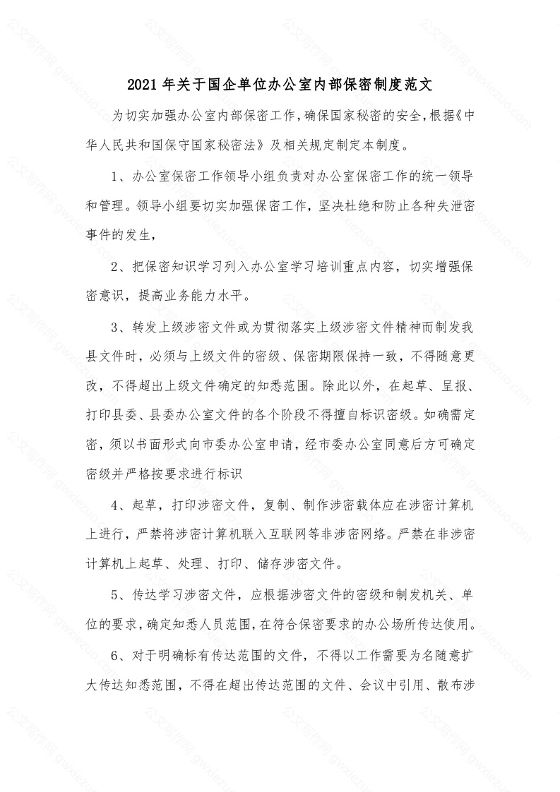 首页工作文档2021年关于国企单位办公室内部保密制度范文