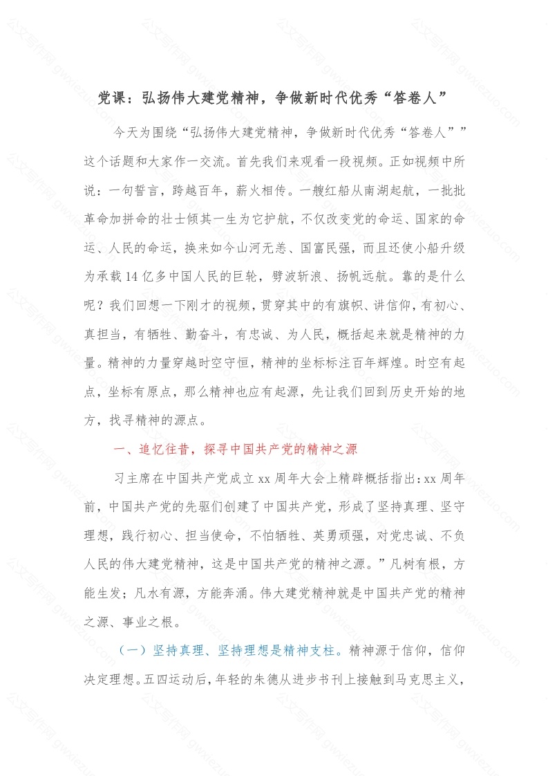 首页工作文档党课:弘扬伟大建党精神,争做新时代优秀“答卷人”