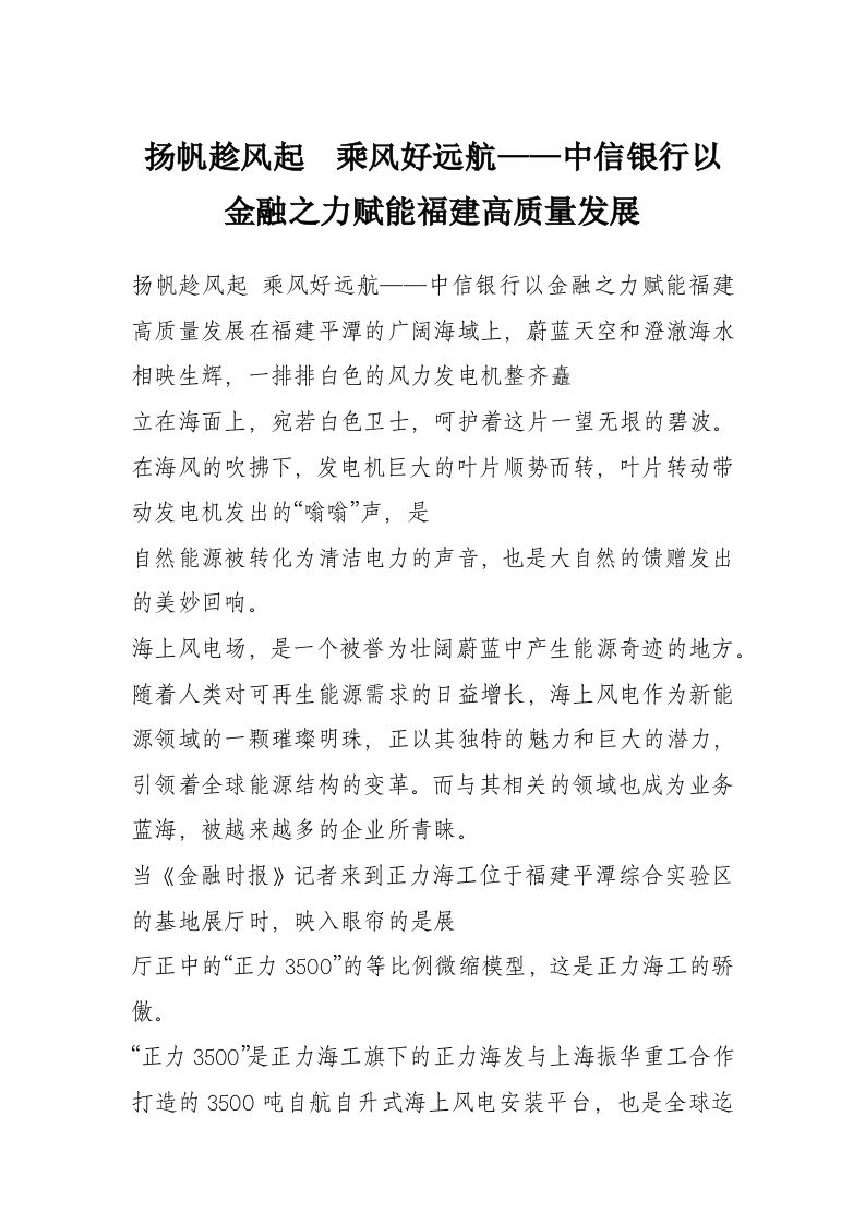 首页写作素材扬帆趁风起 乘风好远航——中信银行以金融之力赋能福建高质量发展