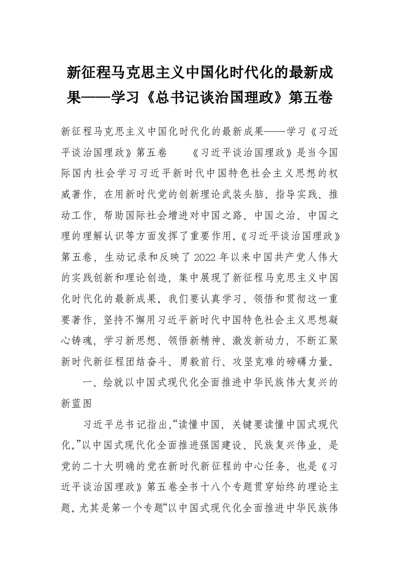 首页写作素材新征程马克思主义中国化时代化的最新成果——学习《总书记谈治国理政》第五卷