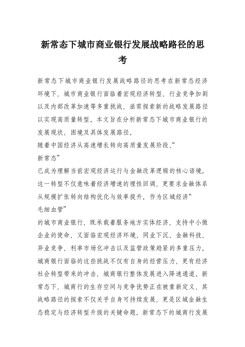 首页写作素材新常态下城市商业银行发展战略路径的思考