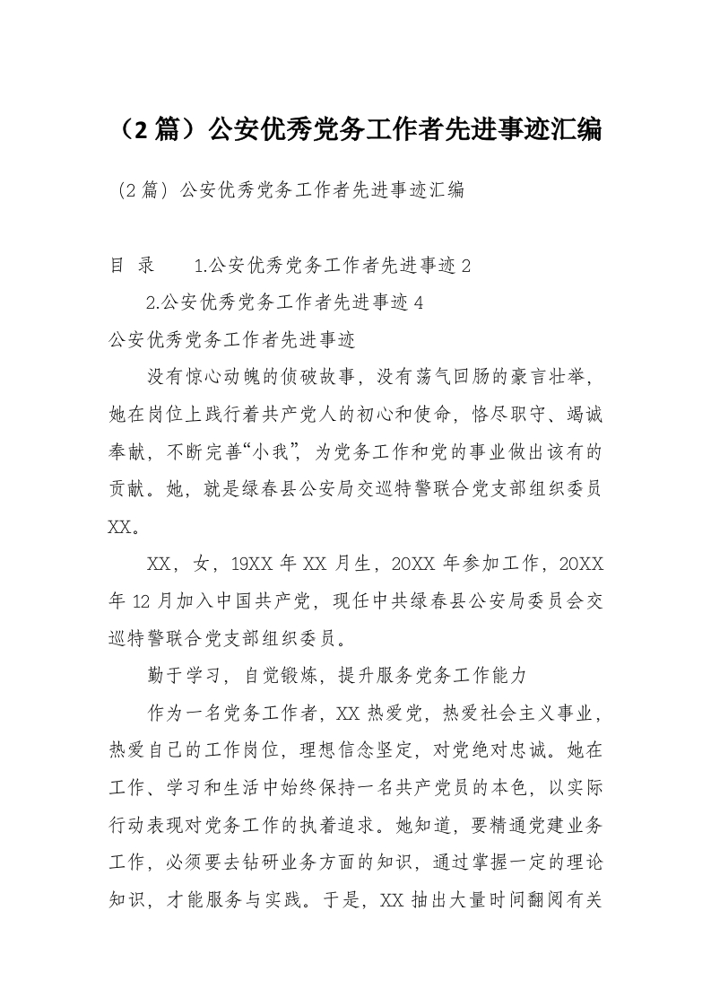 首页工作文档(2篇)公安优秀党务工作者先进事迹汇编