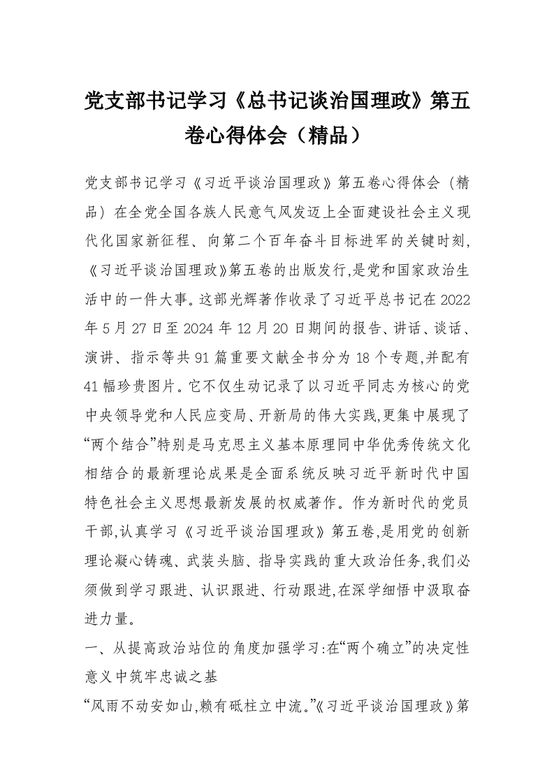 首页工作文档党支部书记学习《总书记谈治国理政》第五卷心得体会(精品)