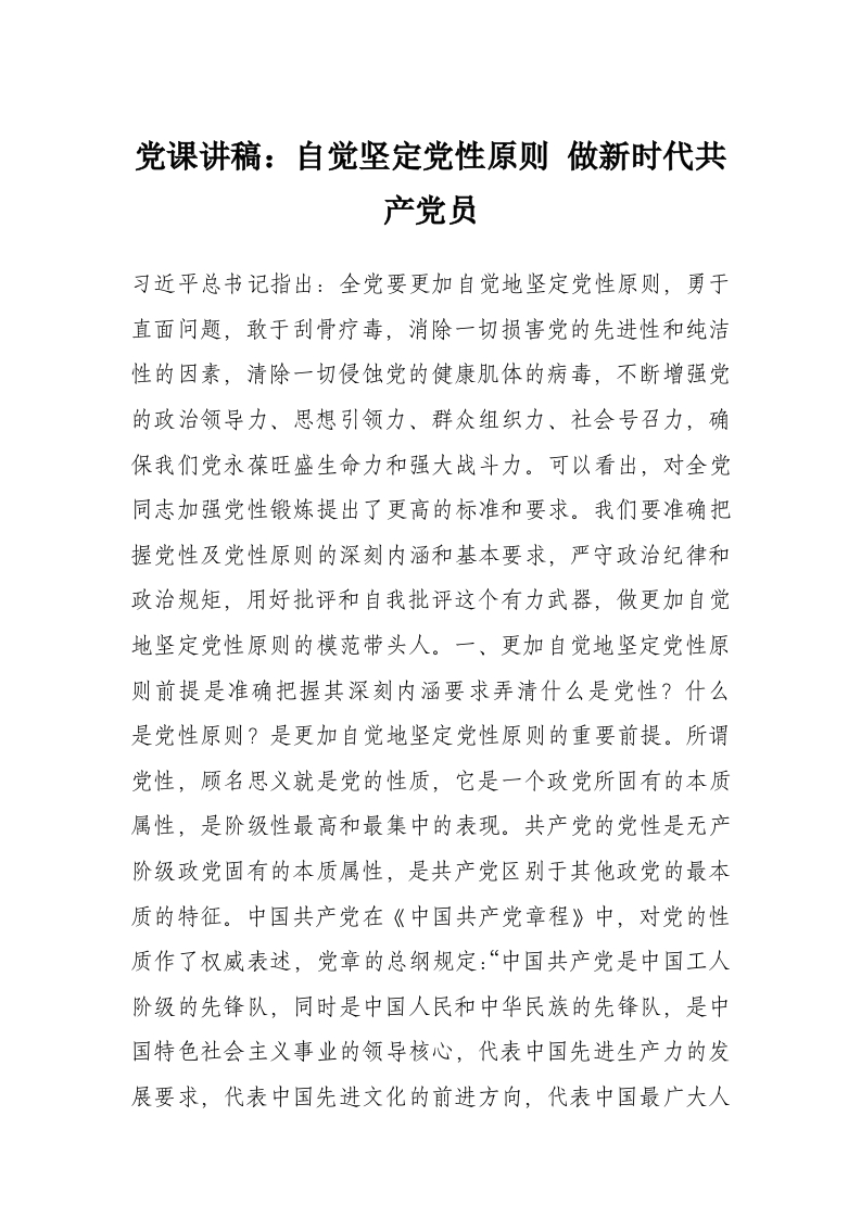 党课讲稿:自觉坚定党性原则 做新时代***员