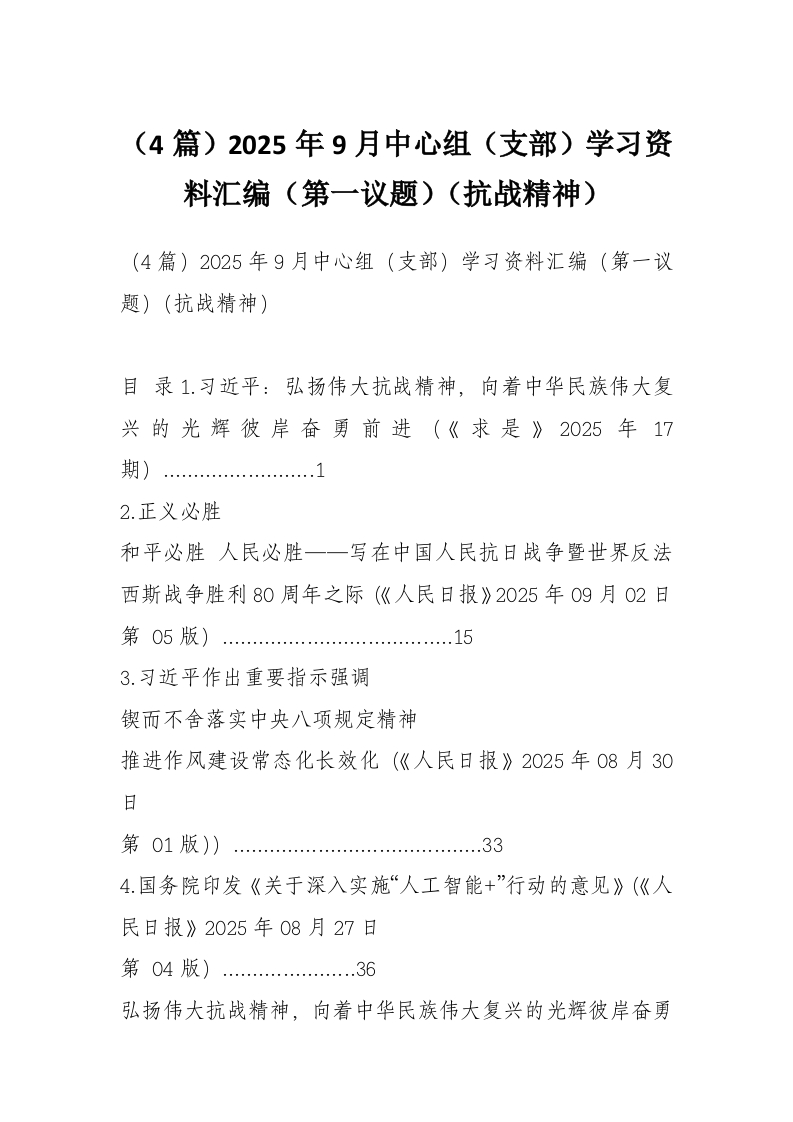 (4篇)2025年9月中心组(支部)学习资料汇编(第一议题)(抗战精神)