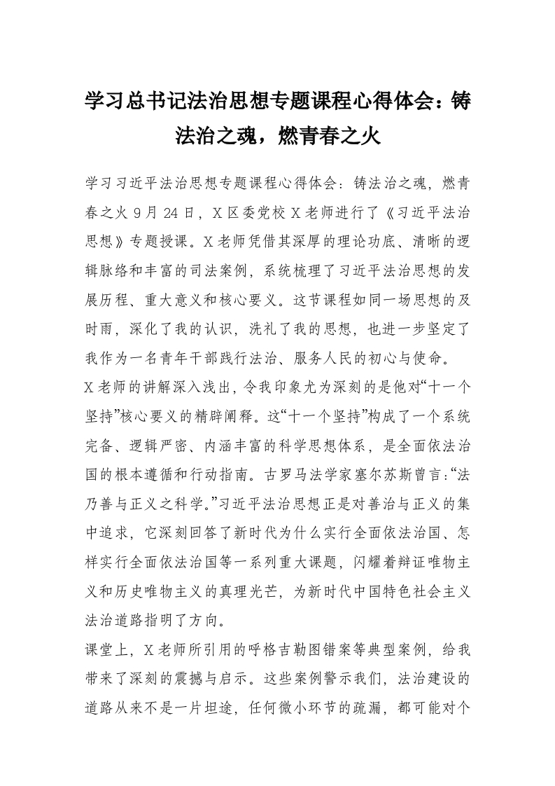 学习总书记法治思想专题课程心得体会:铸法治之魂,燃青春之火