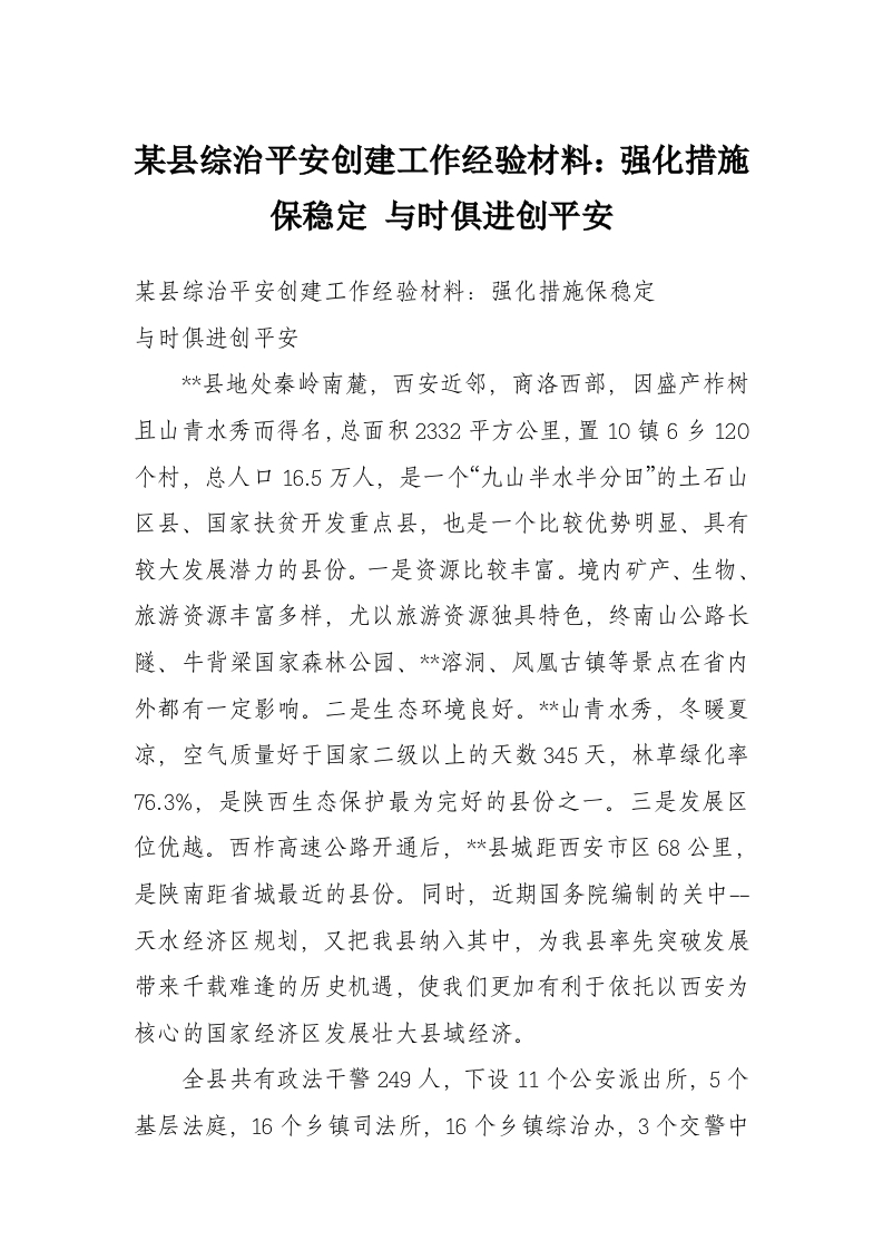 某县综治平安创建工作经验材料:强化措施保稳定 与时俱进创平安