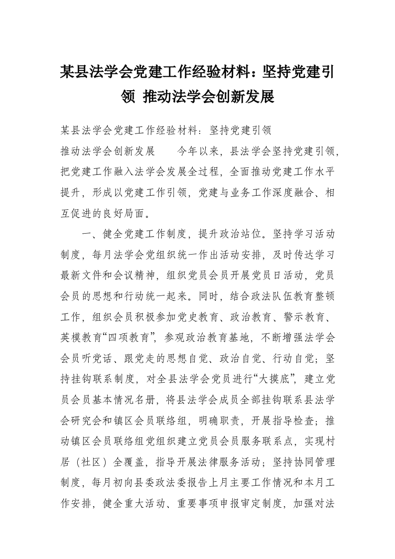 首页材料汇编某县法学会党建工作经验材料:坚持党建引领 推动法学会创新发展