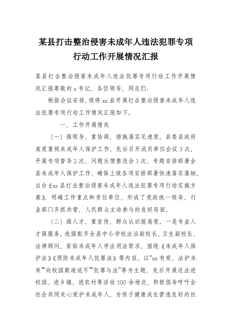 某县打击整治侵害未成年人违法犯罪专项行动工作开展情况汇报