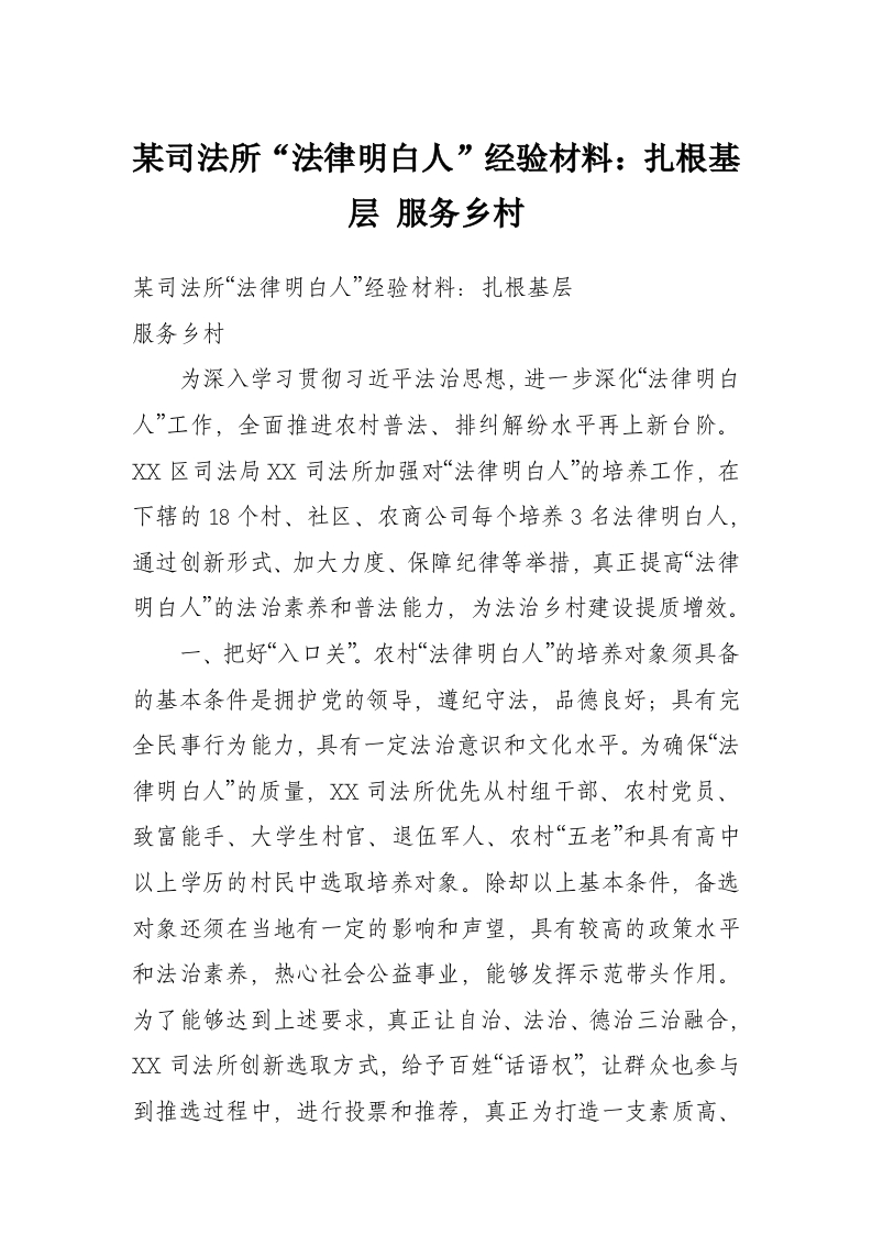 首页材料汇编某司法所“法律明白人”经验材料:扎根基层 服务乡村