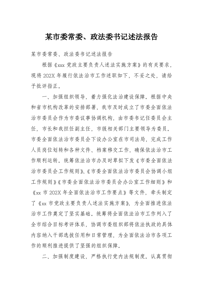 首页材料汇编某市委常委、政法委书记述法报告