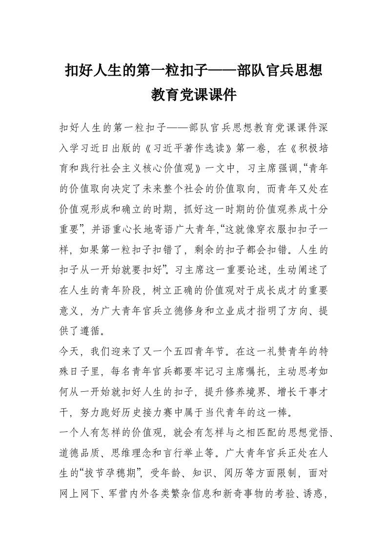 首页材料汇编扣好人生的第一粒扣子——部队官兵思想教育党课课件