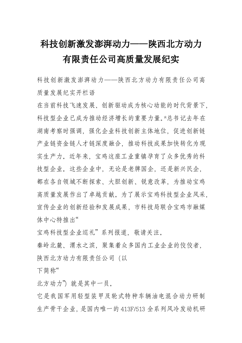 首页材料汇编科技创新激发澎湃动力——陕西北方动力有限责任公司高质量发展纪实
