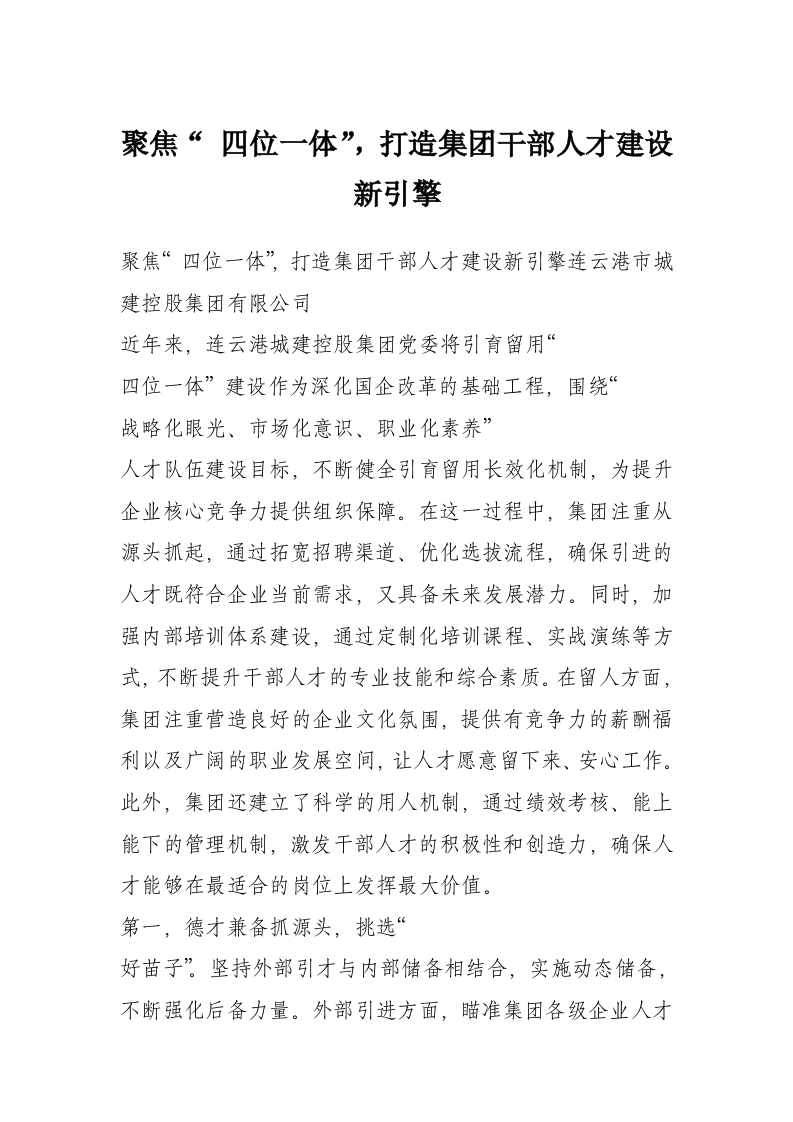 首页材料汇编聚焦“ 四位一体”,打造集团干部人才建设新引擎