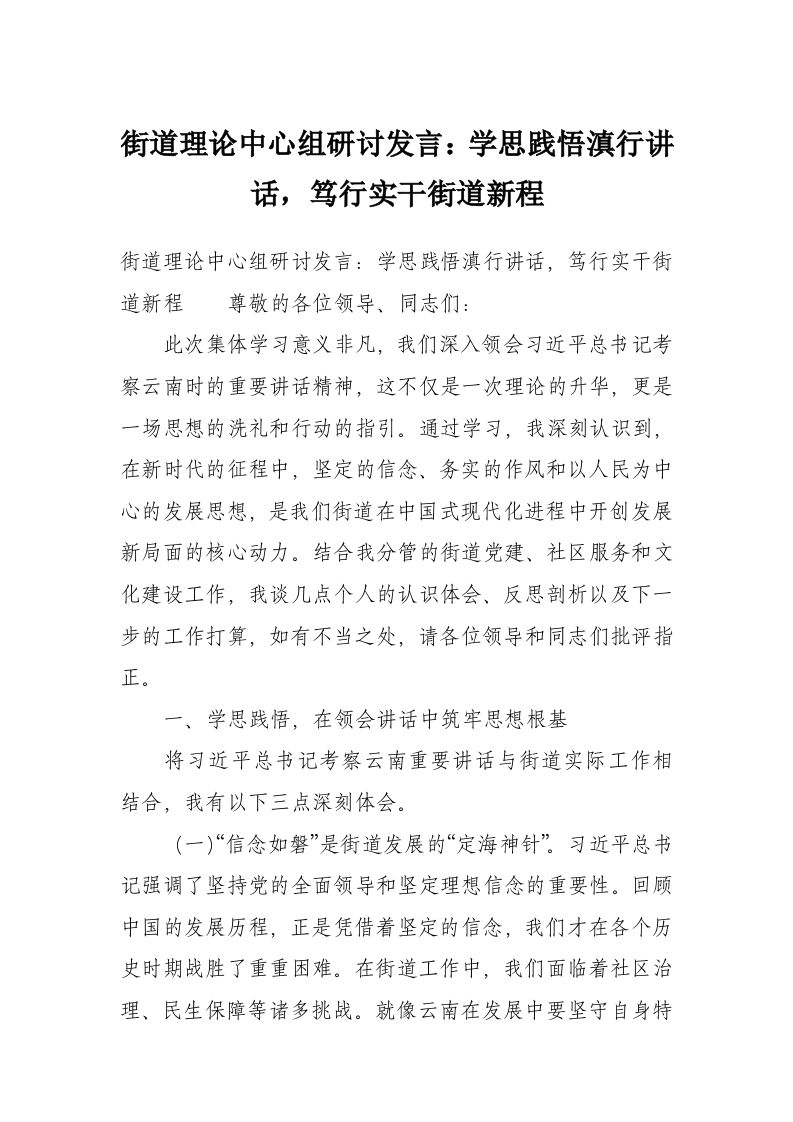 首页学习提升街道理论中心组研讨发言:学思践悟滇行讲话,笃行实干街道新程
