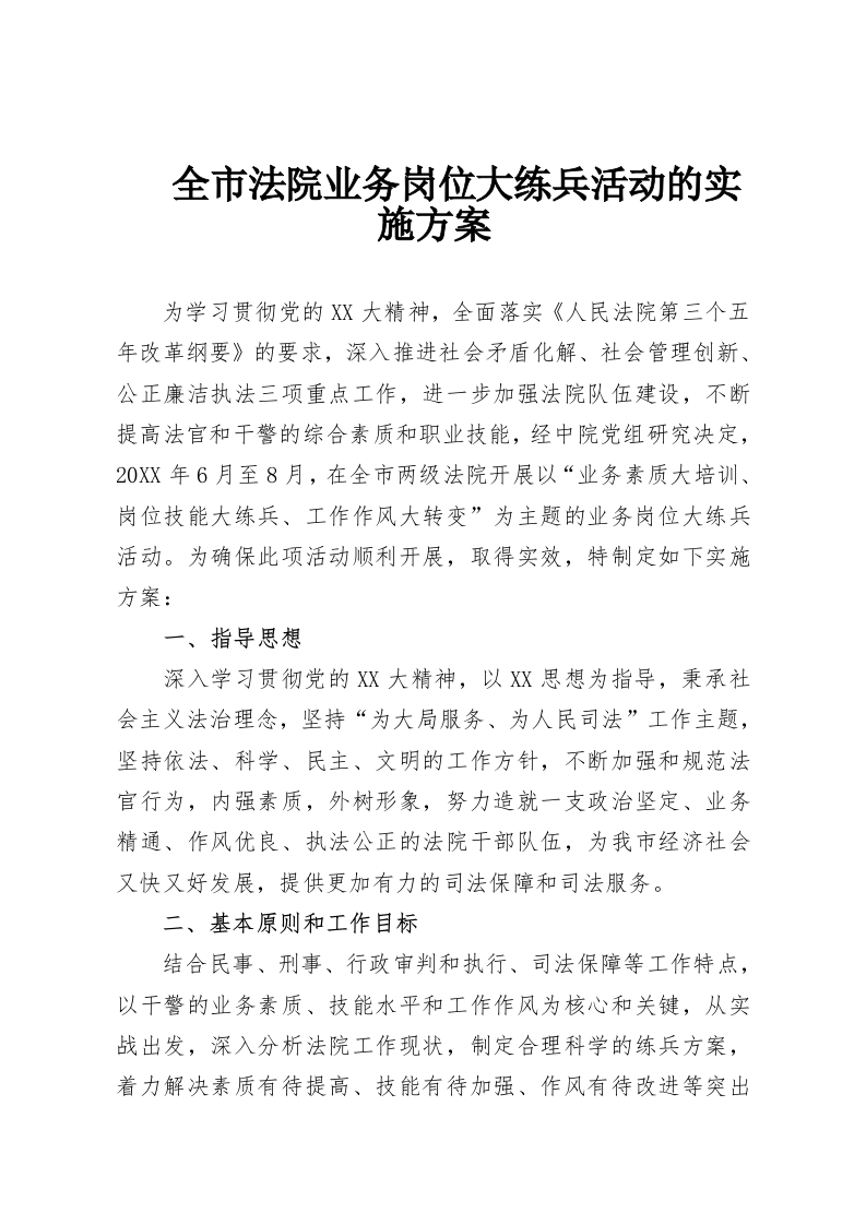 首页精选范文全市法院业务岗位大练兵活动的实施方案