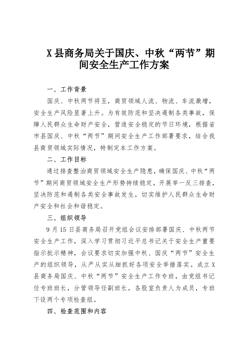 X县商务局关于国庆、中秋“两节”期间安全生产工作方案