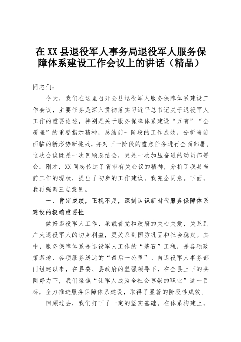 在XX县退役军人事务局退役军人服务保障体系建设工作会议上的讲话(精品)