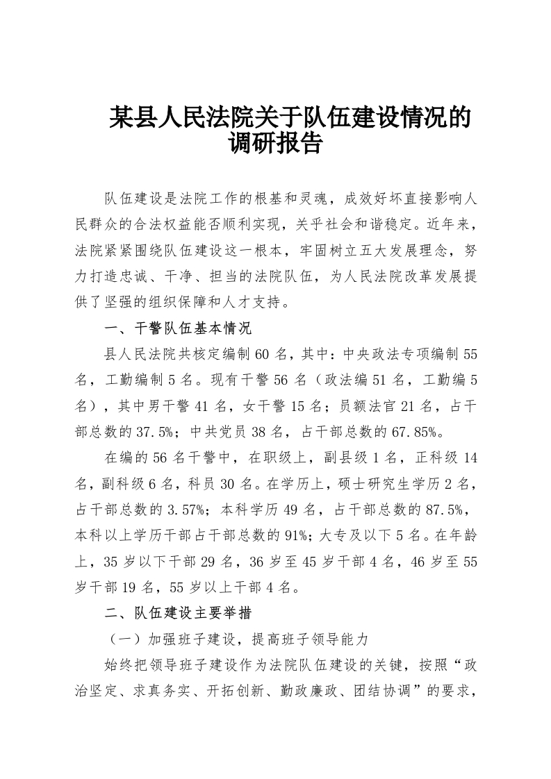 首页精选范文某县人民法院关于队伍建设情况的调研报告