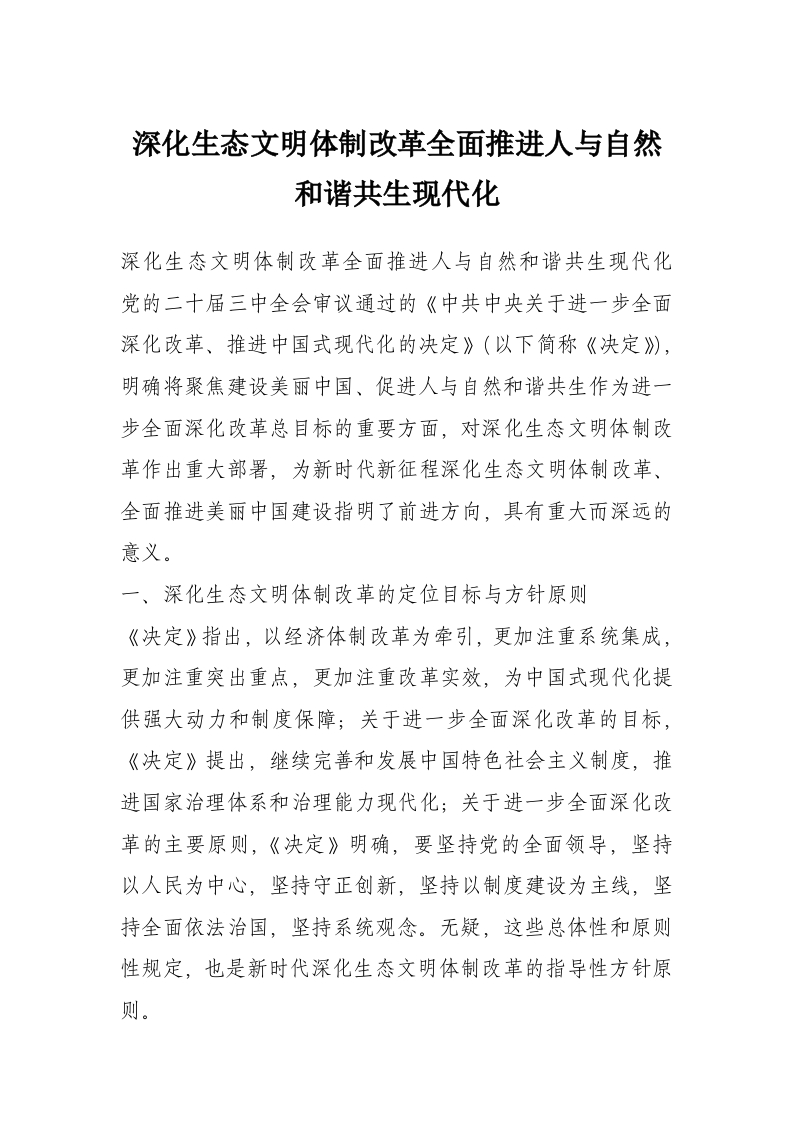 深化生态文明体制改革全面推进人与自然和谐共生现代化