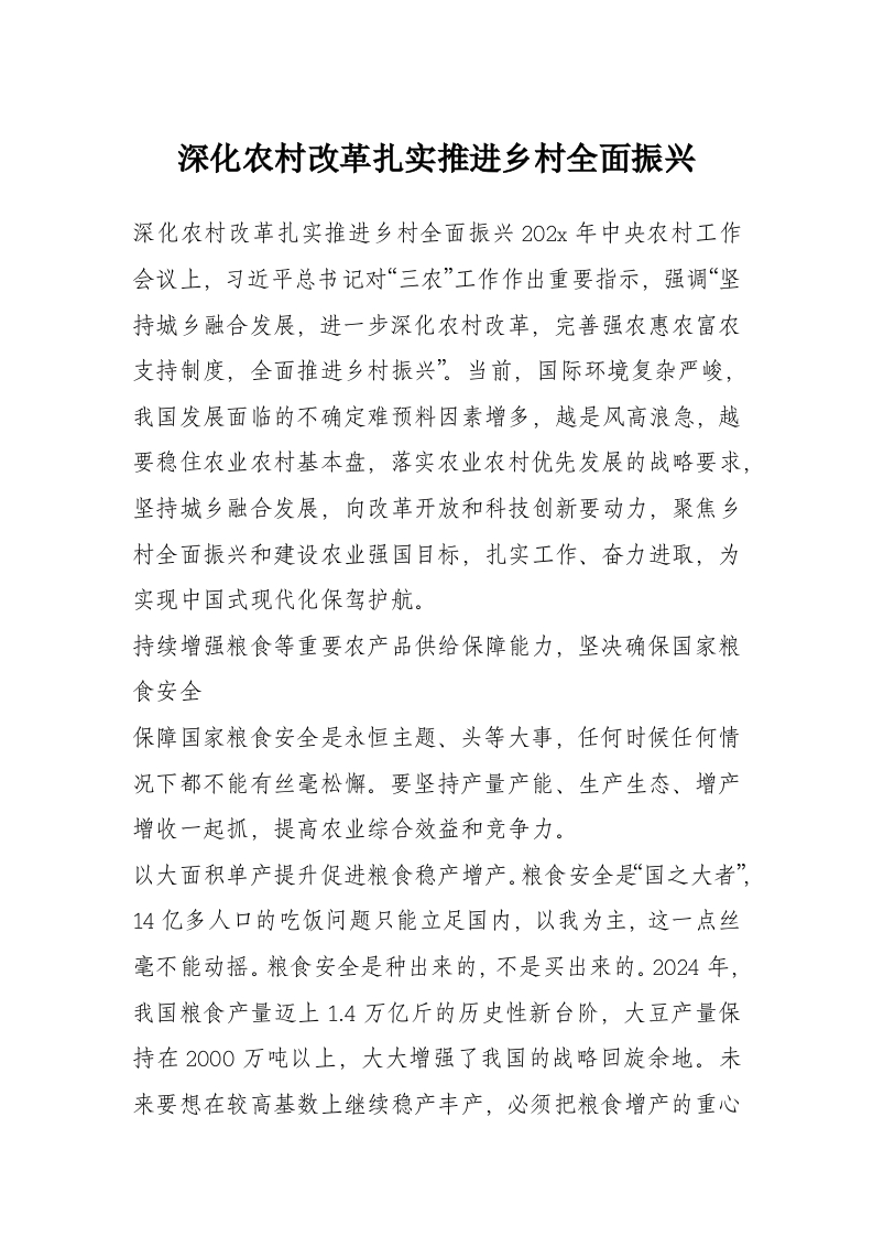 首页工作文档深化农村改革扎实推进乡村全面振兴