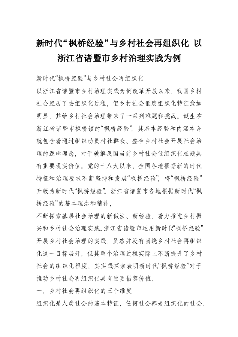 新时代“枫桥经验”与乡村社会再组织化 以浙江省诸暨市乡村治理实践为例