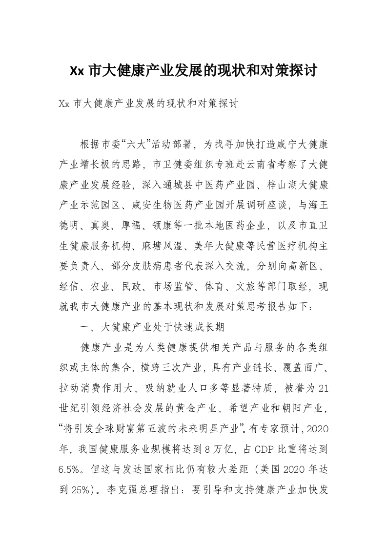 首页写作素材Xx市大健康产业发展的现状和对策探讨