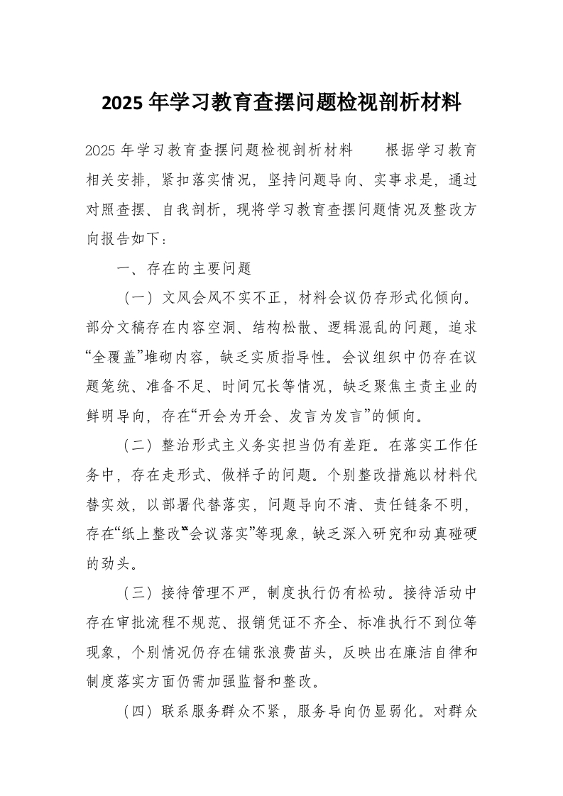 首页写作素材2025年学习教育查摆问题检视剖析材料