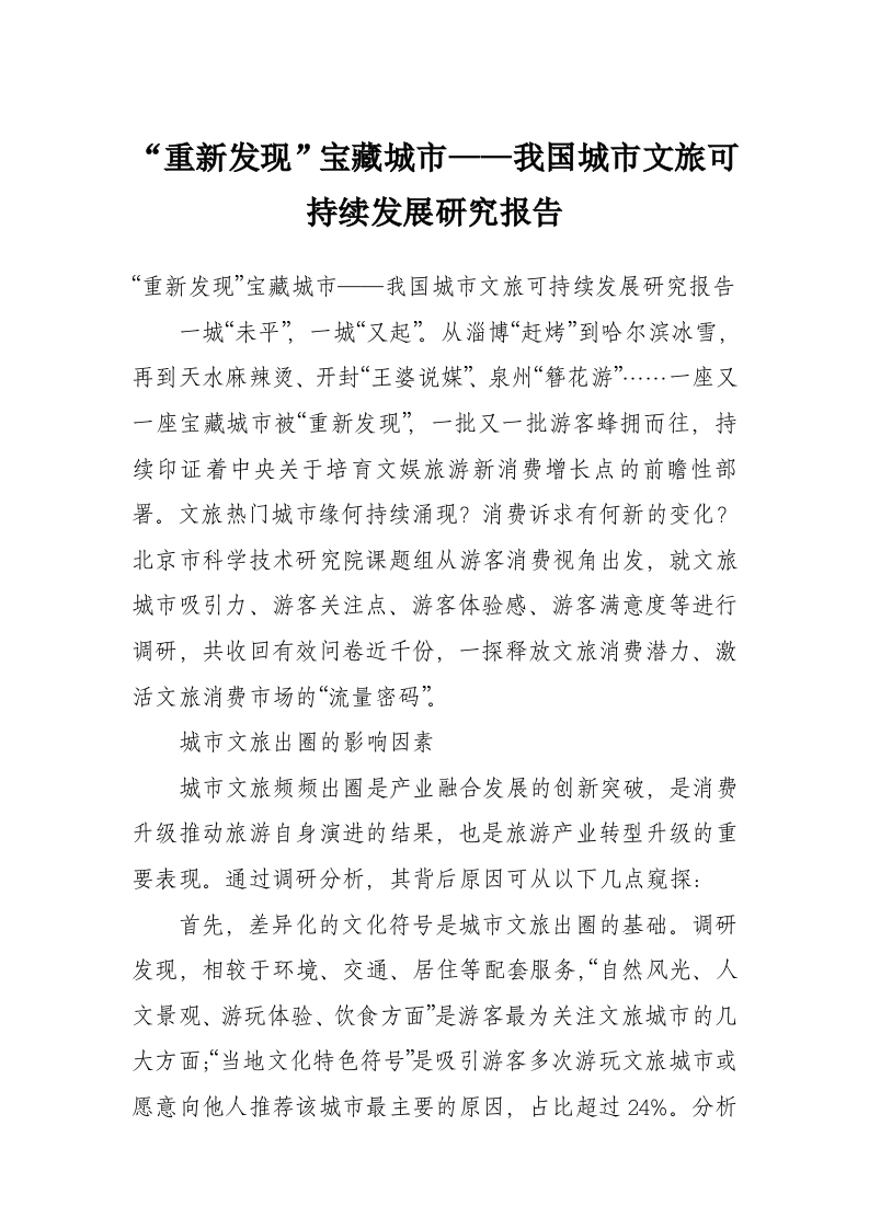 首页写作素材“重新发现”宝藏城市——我国城市文旅可持续发展研究报告