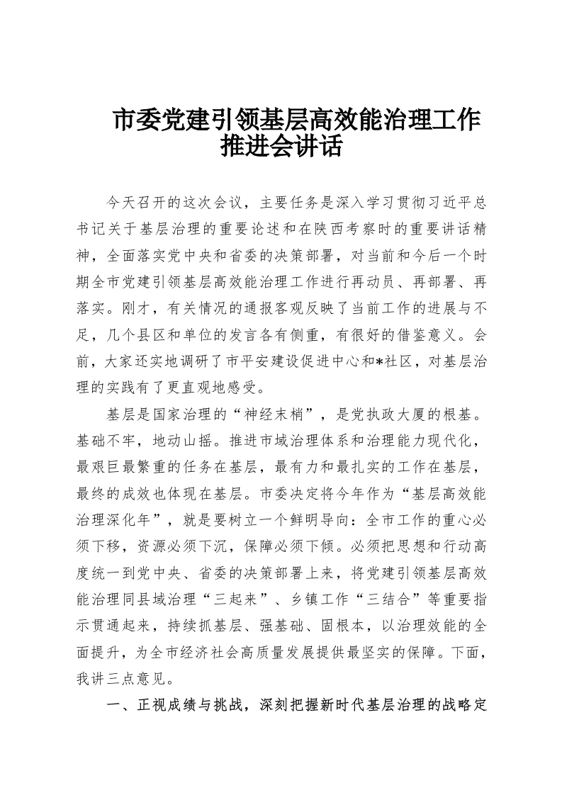 首页写作素材市委党建引领基层高效能治理工作推进会讲话