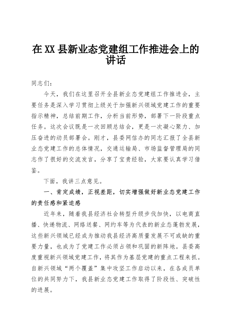 首页写作素材在XX县新业态党建组工作推进会上的讲话