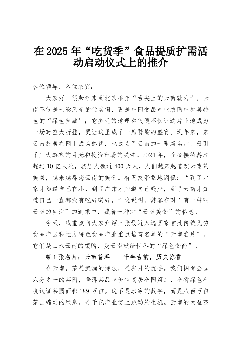 在2025年“吃货季”食品提质扩需活动启动仪式上的推介