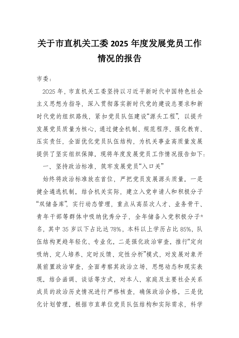首页写作素材关于市直机关工委2025年度发展党员工作情况的报告