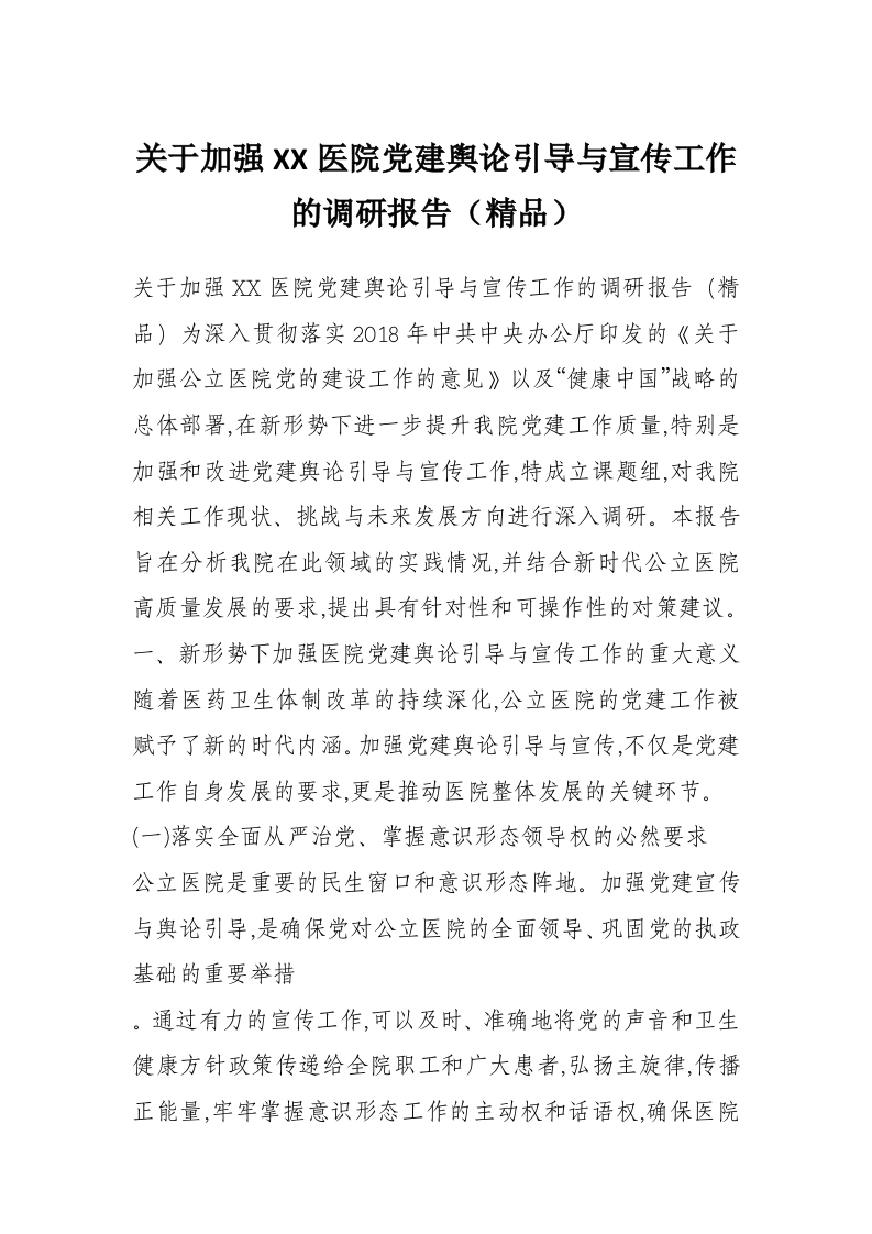 关于加强XX医院党建舆论引导与宣传工作的调研报告(精品)