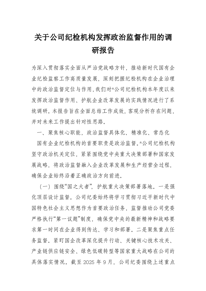 首页写作素材关于公司纪检机构发挥政治监督作用的调研报告