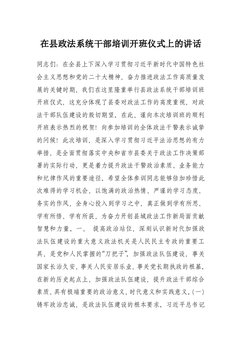 首页材料汇编在县政法系统干部培训开班仪式上的讲话