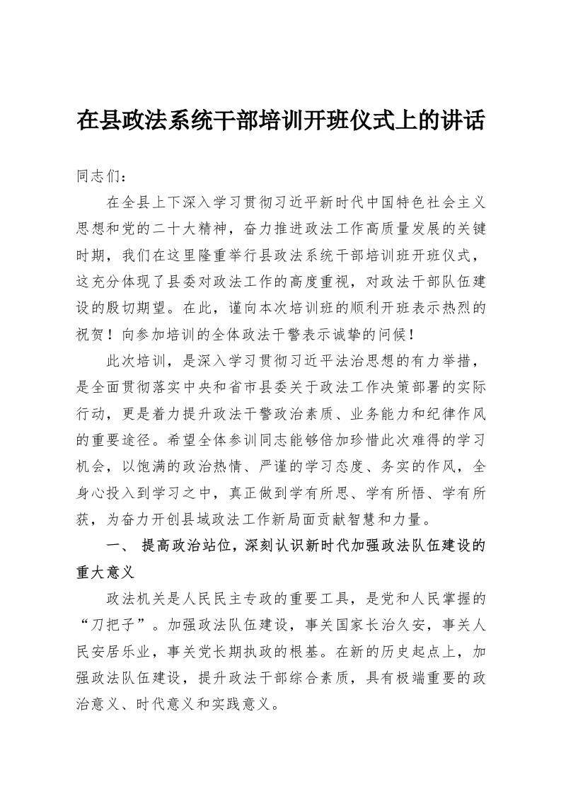 首页精选范文在县政法系统干部培训开班仪式上的讲话