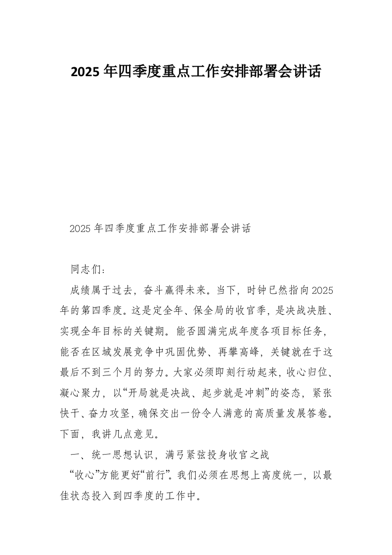 首页工作文档2025年四季度重点工作安排部署会讲话