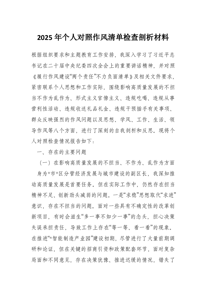 首页工作文档2025年个人对照作风清单检查剖析材料