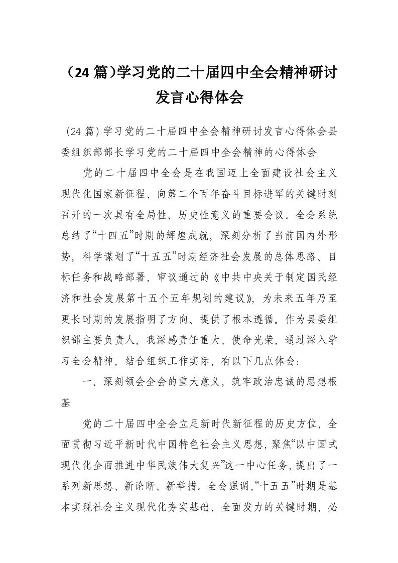 首页工作文档(24篇)学习党的二十届四中***精神研讨发言心得体会