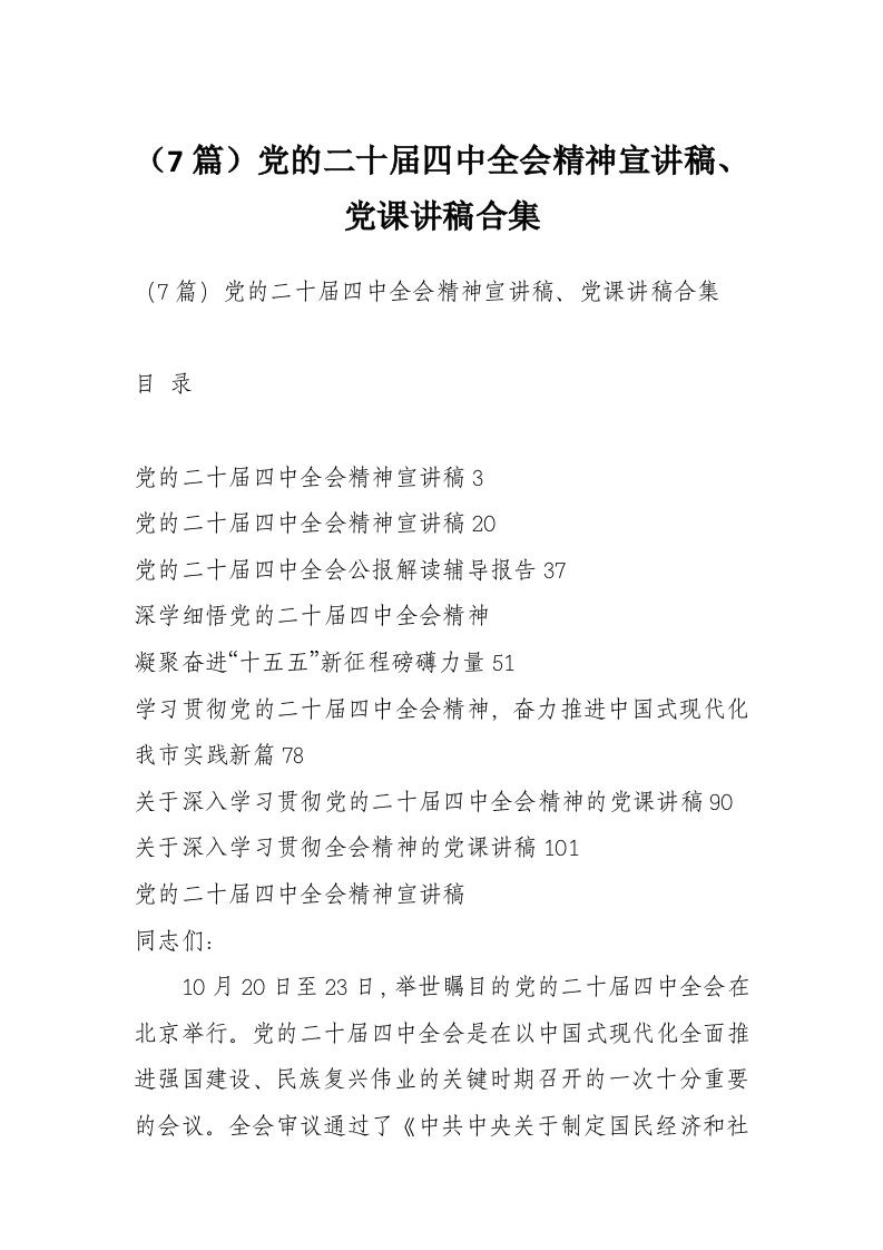 (7篇)党的二十届四中***精神宣讲稿、党课讲稿合集