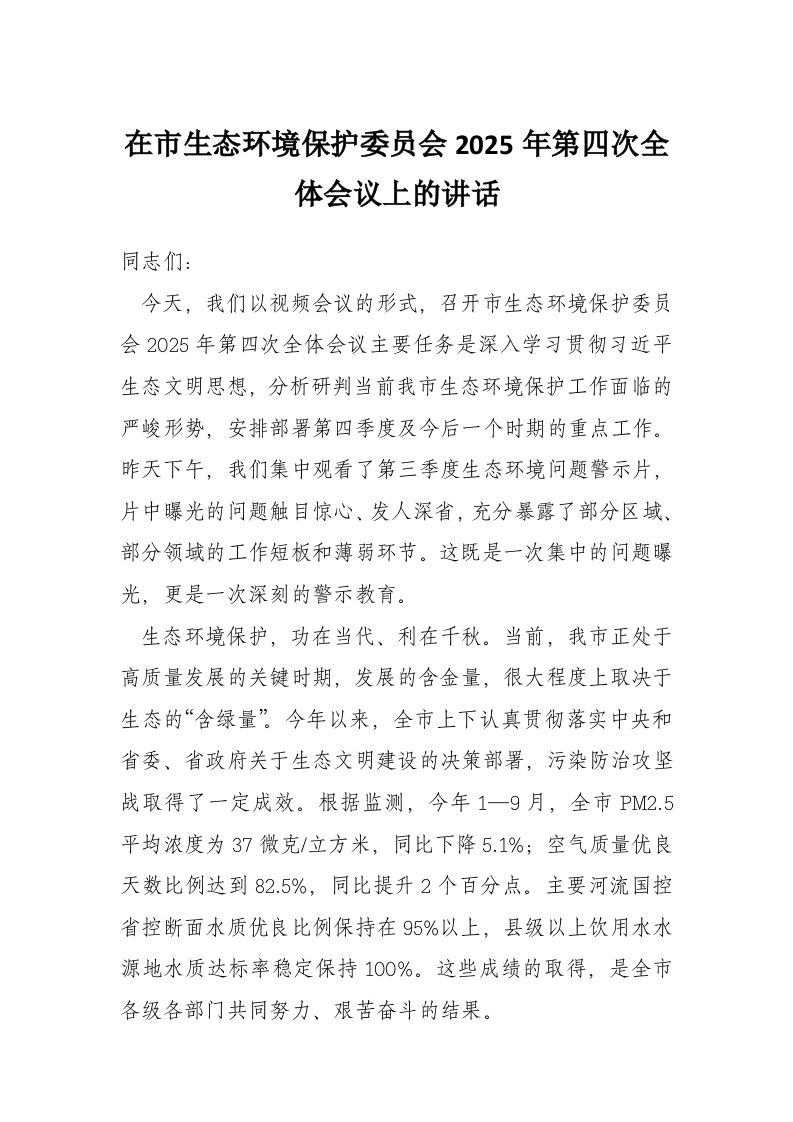 在市生态环境保护委员会2025年第四次全体会议上的讲话